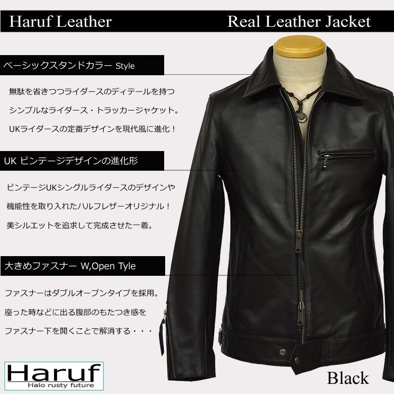 ブランド Haruf ハルフ商品名:衿付き シングルライダース レザージャケット メンズ UK2カラー:ブラック 黒素材 :本革 カウレザー 裏地 :ボディ